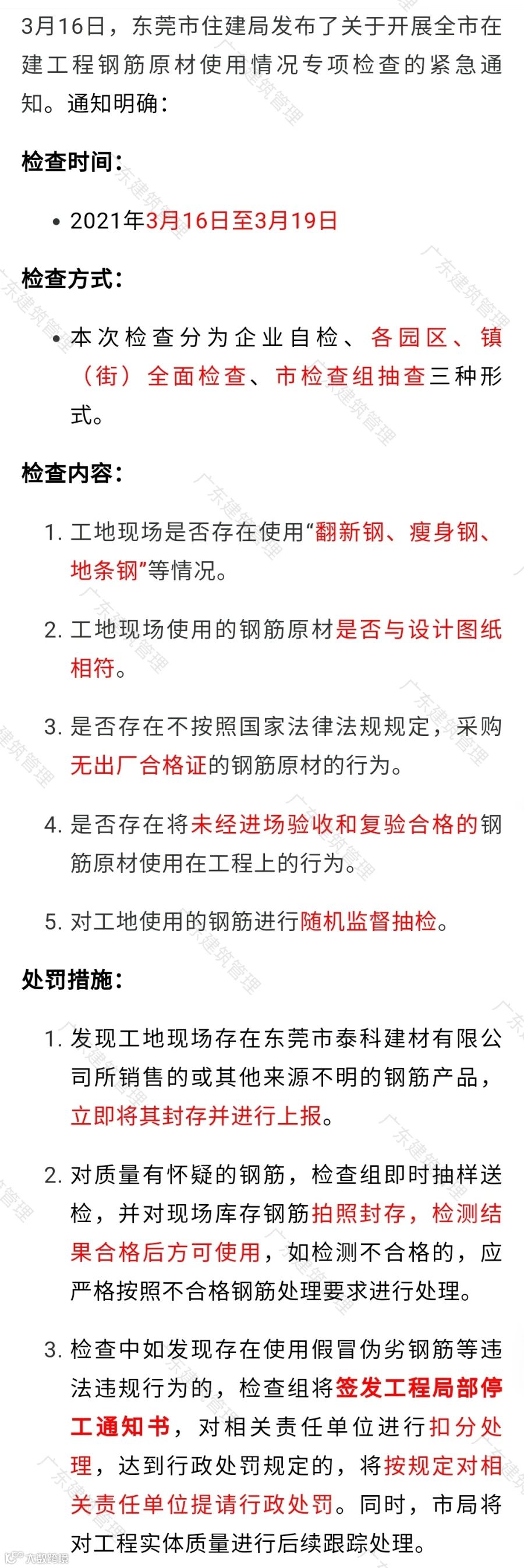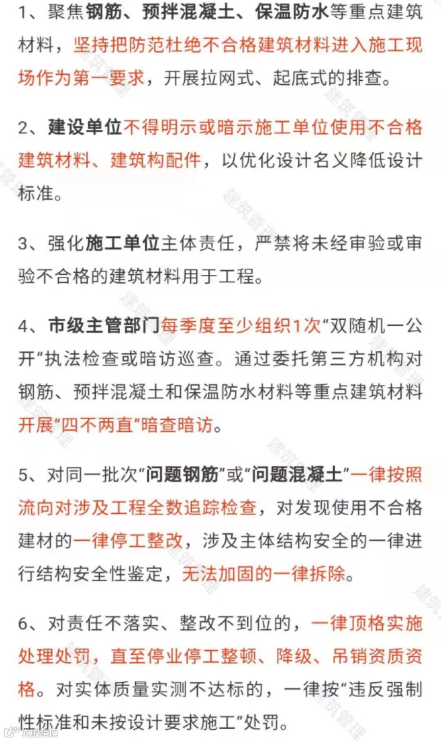 近日,山东省住建厅发布《关于进一步扎实推进重点建筑材料排查整治严厉打击违法违规行为的通知》,明确: