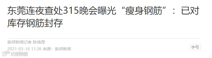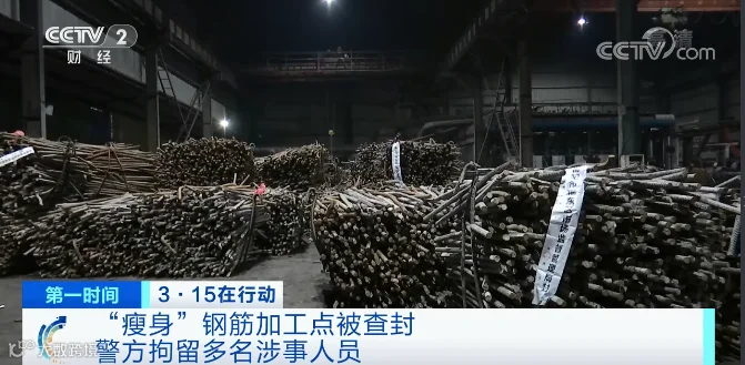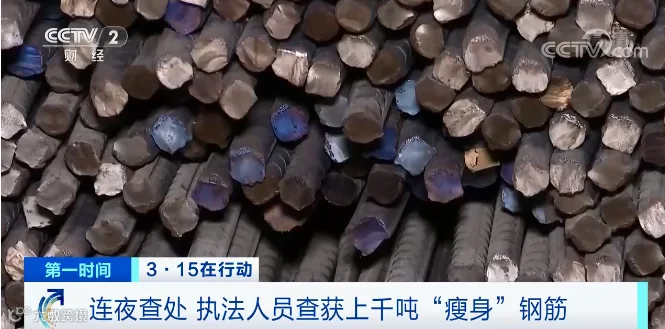 此前,3月15日晚,央视“3·15”晚会曝光了“瘦身钢筋”的黑幕。废旧钢筋一夜翻新成“瘦身钢筋”,一年就有上万吨黑心钢筋流入工地。