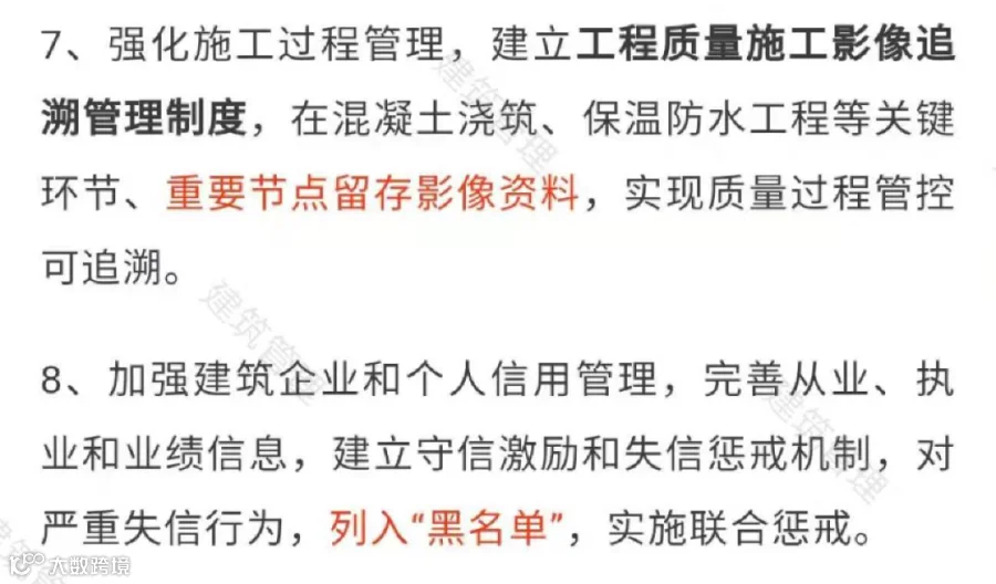 此外《通知》还明确表示,对使用不符合国家或行业标准的重点建筑材料,进入现场前未经查验或查验不合格即投入使用,或因重点建筑材料管理混乱造成工程质量问题的责任单位和责任人,将依法追究相关责任。