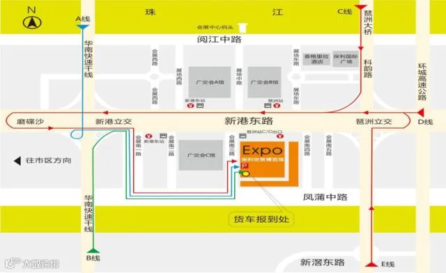 广交会展览馆:乘坐广州地铁至8号线新港东站A出口步行300米即可。