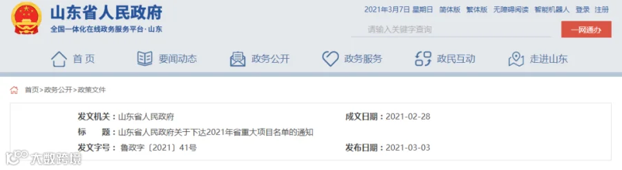 近日,山东省人民政府网站公布2021年省重大项目名单,其中重大实施类项目373个,重大储备类项目127个。
