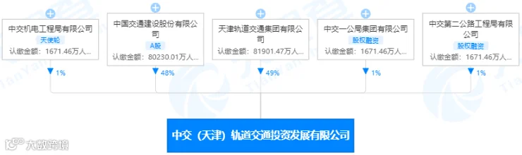 该公司由天津轨道交通集团有限公司持股49%、中国交建持股48%、中交机电工程局有限公司持股1%、中交第二公路工程局有限公司持股1%、中交一公局集团有限公司持股1%。详情如下: