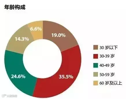 受访大众富裕阶层中,男女比例分别为55.1%和44.9%,总体趋于平衡。同时在年龄分布上,30岁~49岁之间的受访者已占逾六成,其中“30岁~39岁”受访者所占比例较去年有所上升,达到35%,在大众富裕阶层中起到中流砥柱的作用。这一年龄段的人群正处在个人能力的高峰时期,同样也处在职业发展或创业的黄金时段。此外,“30岁以下”的受访者占比也达到19.0%,其中不乏创业有成的年轻人。