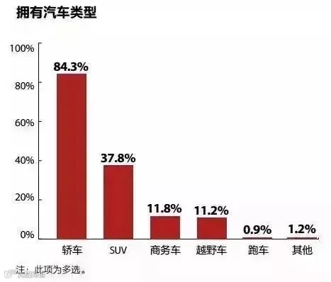 汽车是整个大众富裕阶层生活的必需品,购车对这一阶层来说,并不是很大的负担。但与游艇这种奢侈爱好相比,他们购车时可现实有营养多了。在拥有的汽车中,“轿车”是最普遍的选择,其次是“SUV”,“商务车”和“越野车”的选择比例则相对不高,只有0.9%的人会选择跑车,而20—30万和30—50万的汽车是他们最青睐的价位选择。