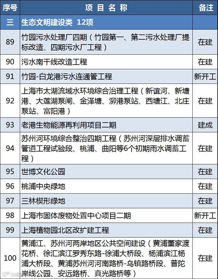 计划新开工2项:竹园白龙港污水连通管工程、上海市固体废物处置中心项目二期。