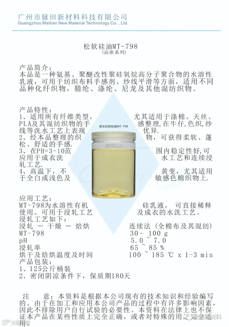定制高浓系列硅油具有极致的性能和超强的性价比,在满足您产品需求的同时大大的减低了生产成本。本产品主打松、软、弹的精致手感,在牛仔洗水、包芯纱线整理、花边织物及腈棉保暖等工艺上有杰出表现。