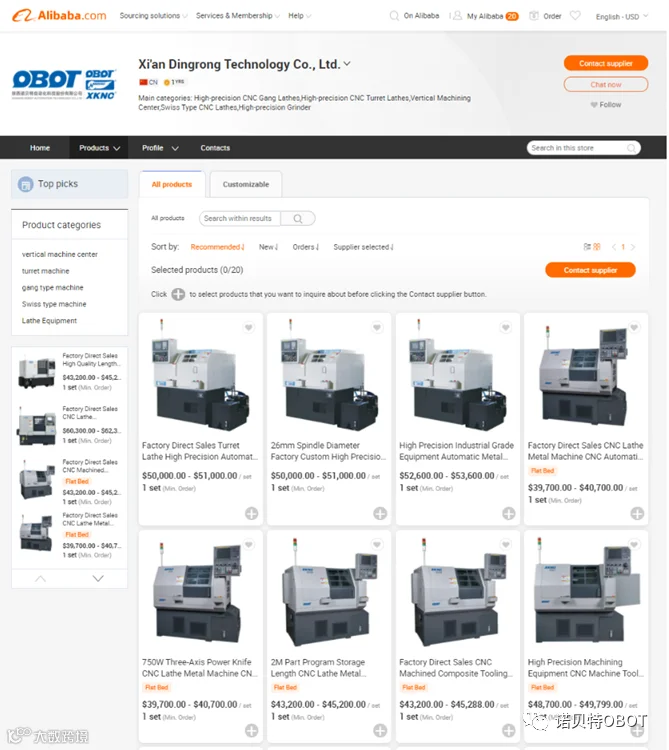 5月18日,陕西诺贝特自动化科技股份有限公司(简称:陕西诺贝特)下属子公司 西安鼎荣精密设备有限公司 主导的全球电商平台在Alibaba国际站(店铺链接https://xadrjm.en.alibaba.com/)正式上线,以数字手段服务公司海外贸易销售。