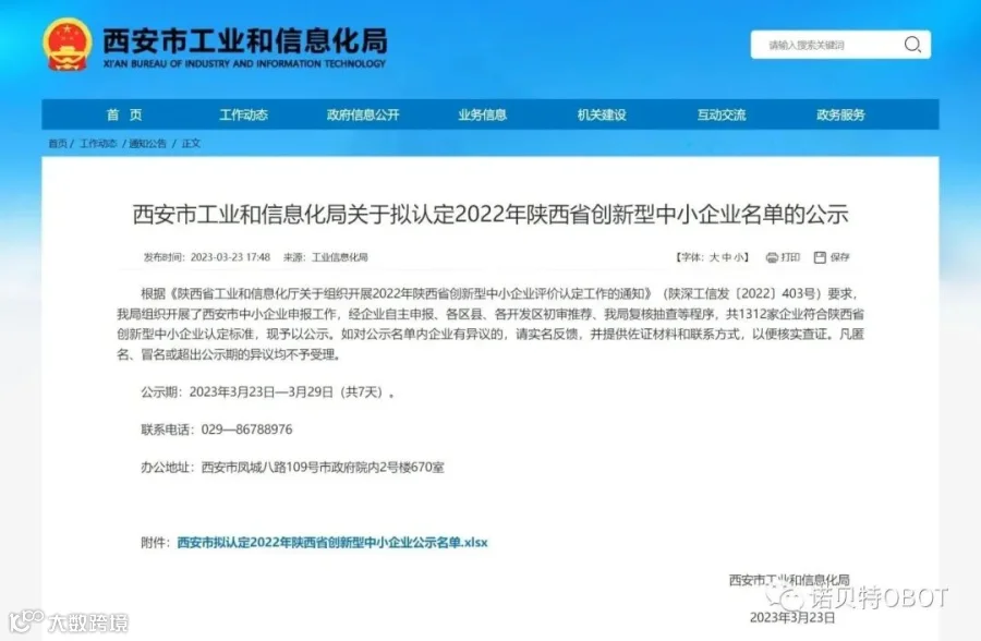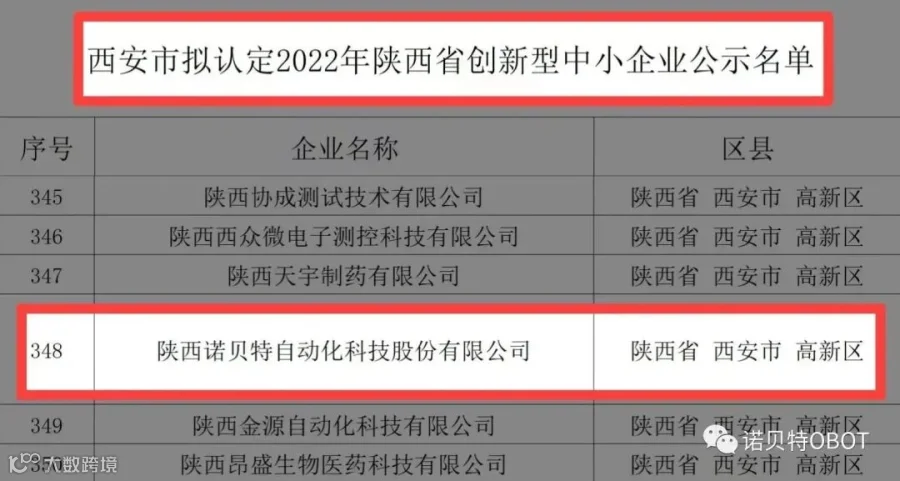 近日,西安市工业和信息化局发布了“关于拟认定2022年陕西省创新型中小企业名单”,陕西诺贝特自动化科技股份有限公司凭借对核心产品的持续创新能力及发展潜力成功入选。