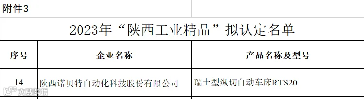 近日,陕西省科学技术厅公布了“2023年度中青年科技创新领军人才、科技创新创业人才及2024年度青年科技新星人选”名单,陕西省工业和信息化厅公布了2023年“陕西工业精品”名单,公司董事长赵滨成功入选2023年度陕西省科技创新创业人才,诺贝特自主研发的纵切自动车床RTS20成功入选陕西工业精品。
