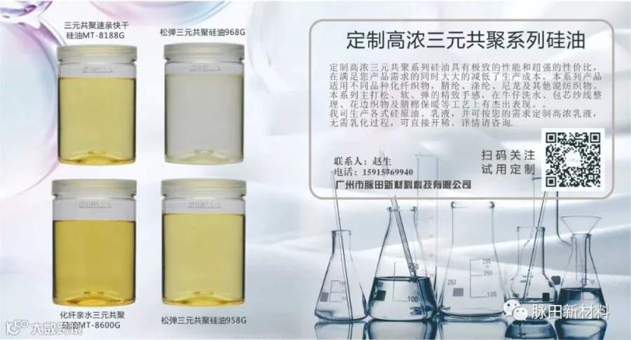 我司生产各式硅原油,乳液,功能整理剂。可按您的需求定制任意手感品种,为您解决生产烦恼,性能要求。