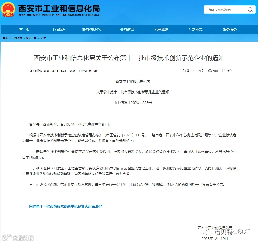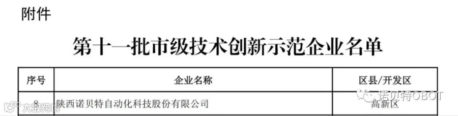 近日,西安市工业和信息化局公布了第十一批市级技术创新示范企业,诺贝特凭借自主创新能力被认定为西安市技术创新示范企业。