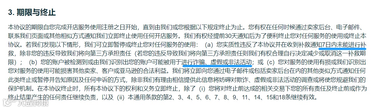 据了解,视频验证及结果判定依据是指《亚马逊服务商业解决方案协议》中第三条的规定,其中“账号可能被用于欺诈、虚假或非法活动”,就包括虚假资料注册店铺这一行为。