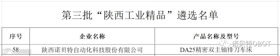 近日,陕西省工业和信息化厅公布了第三批“陕西工业精品”名单,陕西诺贝特自动化科技股份有限公司自主研发的DA25精密双主轴排刀车床成功入选。