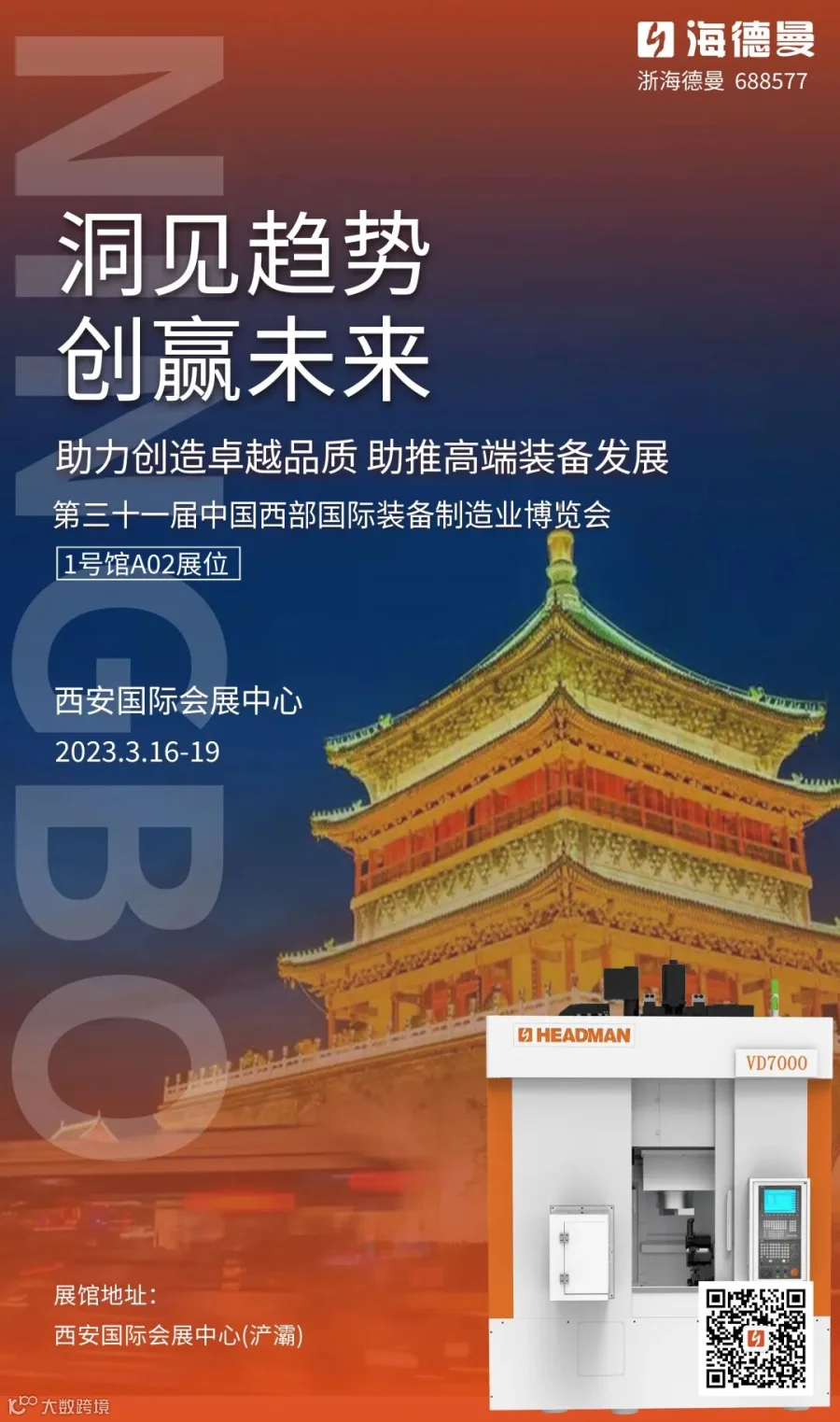 我们诚挚地邀请您于2023年3月16-19日莅临中国西部国际装备制造业博览会,1号馆A02海德曼展位。