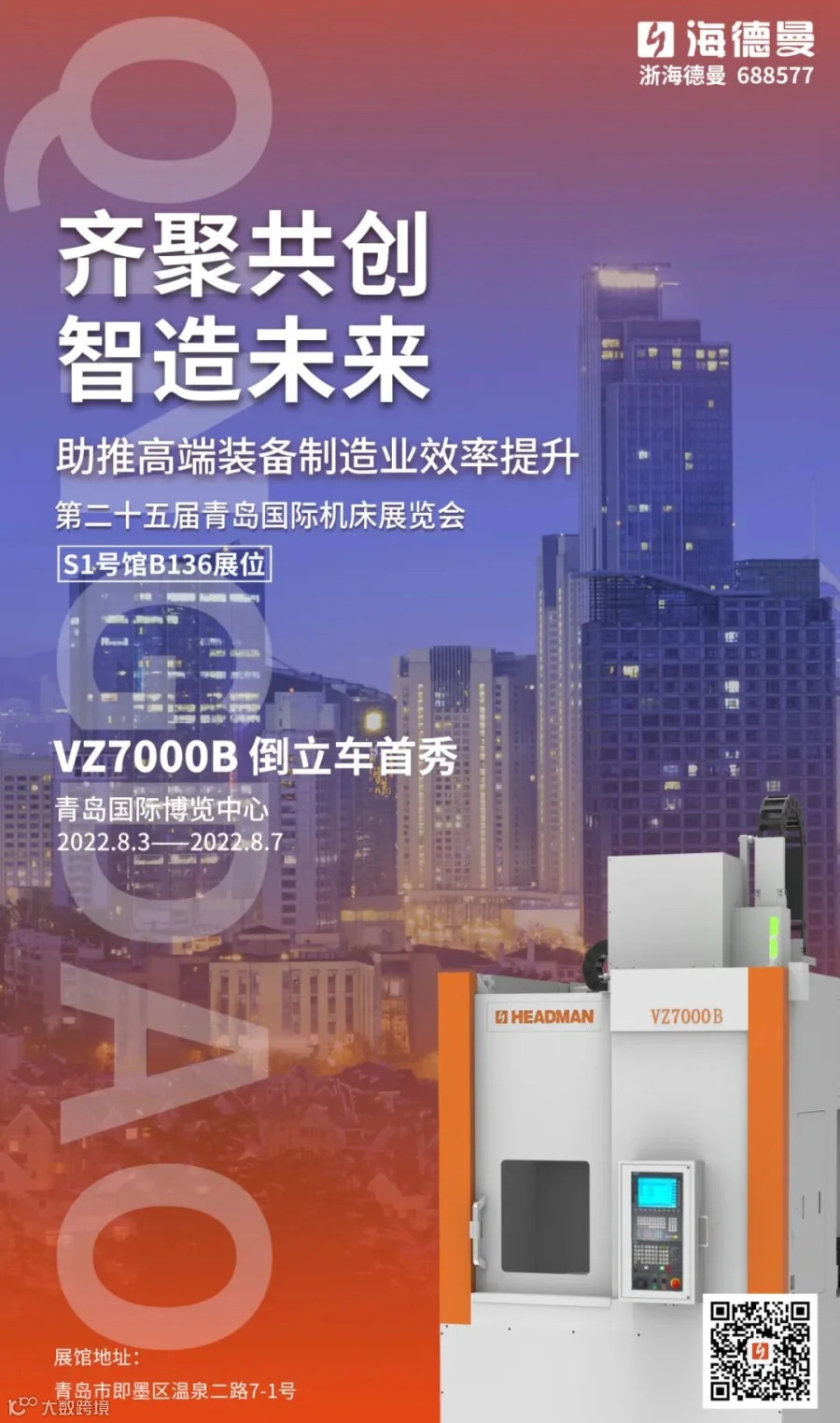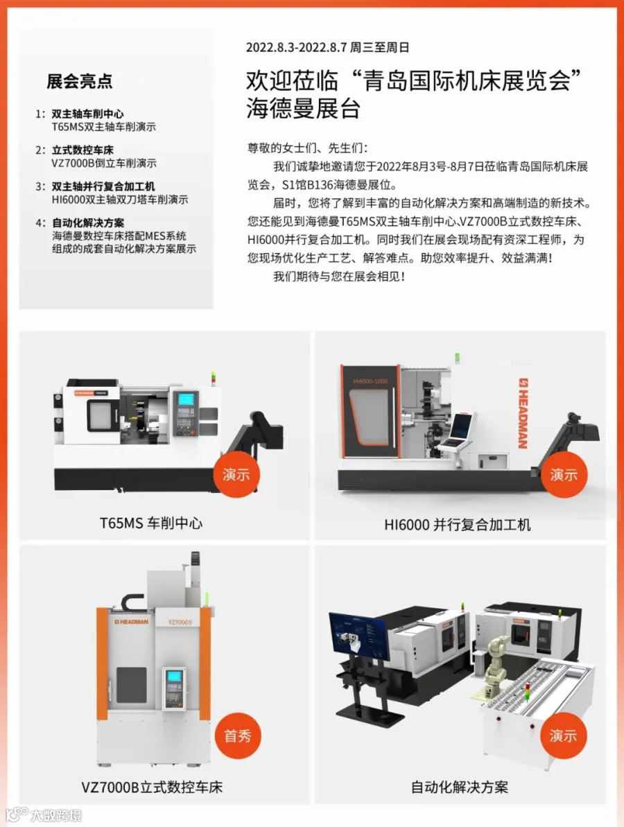 我们诚挚地邀请您于2022年8月3-7日莅临中国(青岛)国际机床展,S1号馆B136海德曼展位。