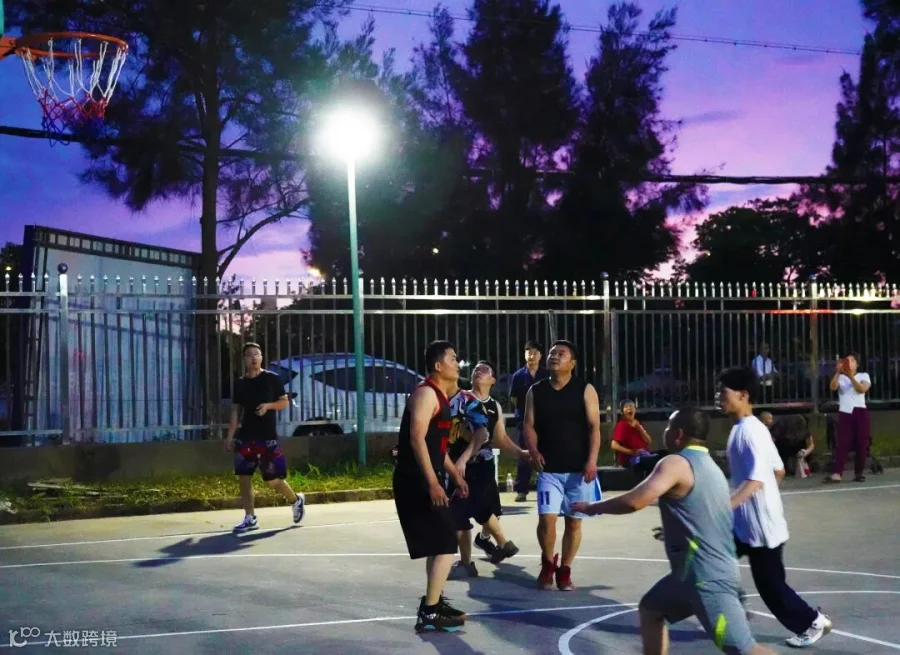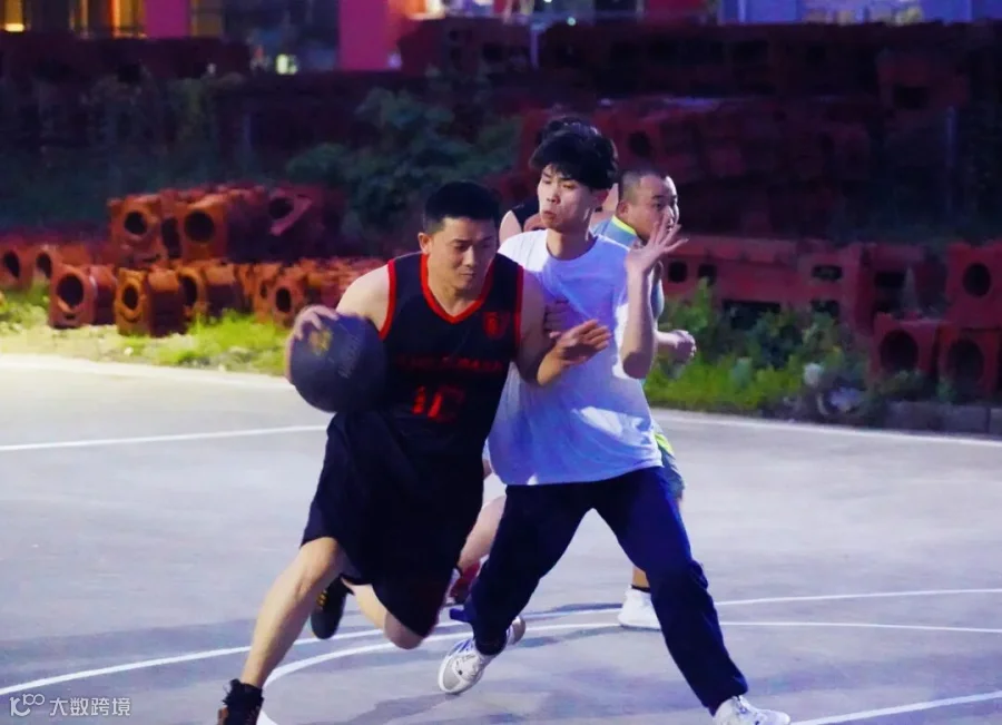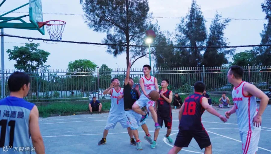 赛前,各位青年热身以待,互相打气。比赛开始,随着裁判一声口哨,大家都立马进入状态,投球扣篮,高速运球,每个动作都不拖泥带水。