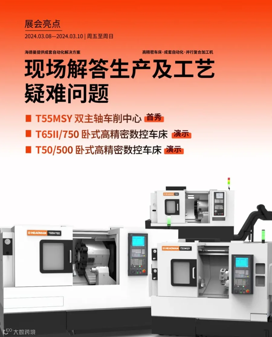 届时,您将了解到海德曼丰富的自动化解决方案和高端制造的新技术,以及T55MSY双主轴车削中心、T65II/750卧式高精密数控车床、T50/500卧式高精密数控车床。我们在展会现场配有资深工程师,为您现场解答难点,助您效率提升、效益满满!