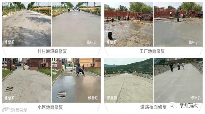 修补砂浆的使用范围非常广泛,比如国道、省道、城市道路、城镇道路、农村道路、桥面、驾校、加油站、停车场、商场、工业园区、厂房、车库、小区路面、物流园等等,只要是混凝土路面皆可修补。