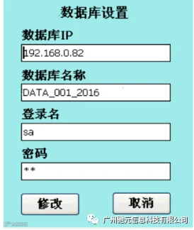 2、点“设置”按钮进行数据库信息配置:配置完成点“修改”按钮退出界面。