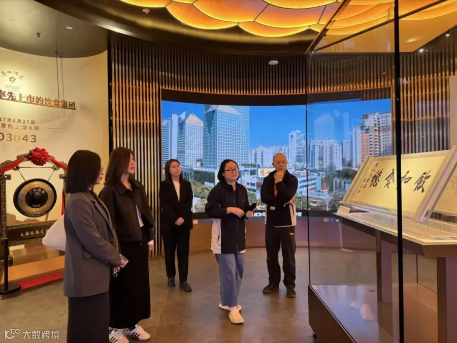 (利口福连锁公司代表乔女士为参观人员介绍企业文化展厅内容)
