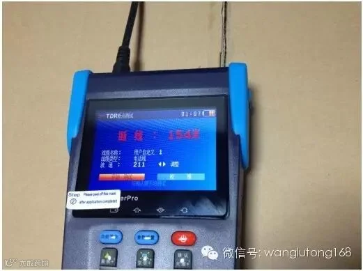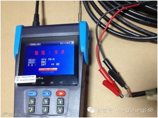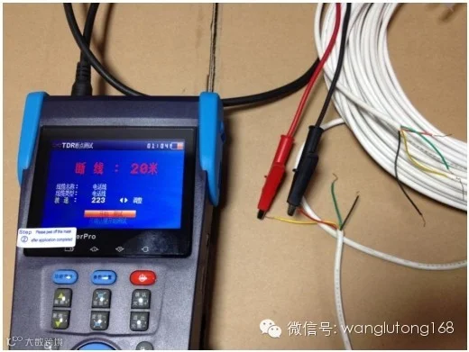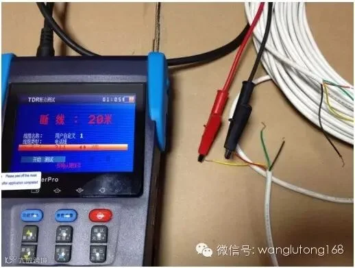 4.测试短路的时候直接把另外一端的铜芯和屏蔽层的铜丝绞在一起,就可以测试短路的距离。经试验验证短路的测试距离相当准确,同我们所准备的测试线缆的距离吻合。