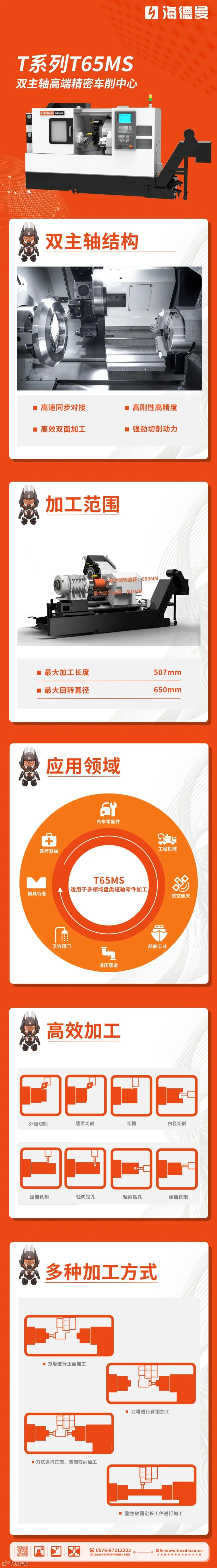 导读:T65MS数控车床是一款高刚性高精度全功能车削中心,特别适宜粗精工序集约化加工。广泛应用于汽车、航空航天、模具、高铁、食品化工机械、电子等行业精密零件的高效率加工。