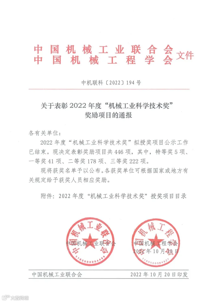 中国机械工业科学技术奖是经国家科学技术部批准,在国家科技奖励主管部门注册,由中国机械工业联合会和中国机械工程学会共同设立,面向全国机械工业的综合性科技奖项。也是机械工业申报国家科技进步奖的主要渠道。