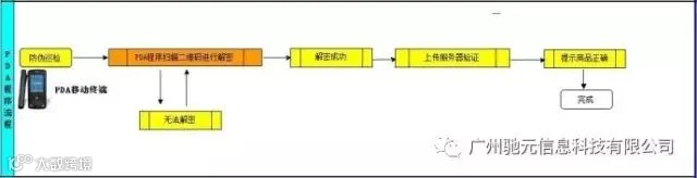 二,PDA采集终端对二维码进行加密验证,验证后通过WIFI或GPRS和后台数据验证是否此商品正确的。