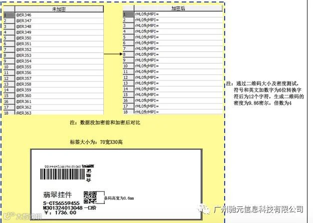 一,PC软件+条码打印机),连接ERP倒出的Excel数据库后,先将数据库某列字段(如序列号)转换成加密后打印出二维码。