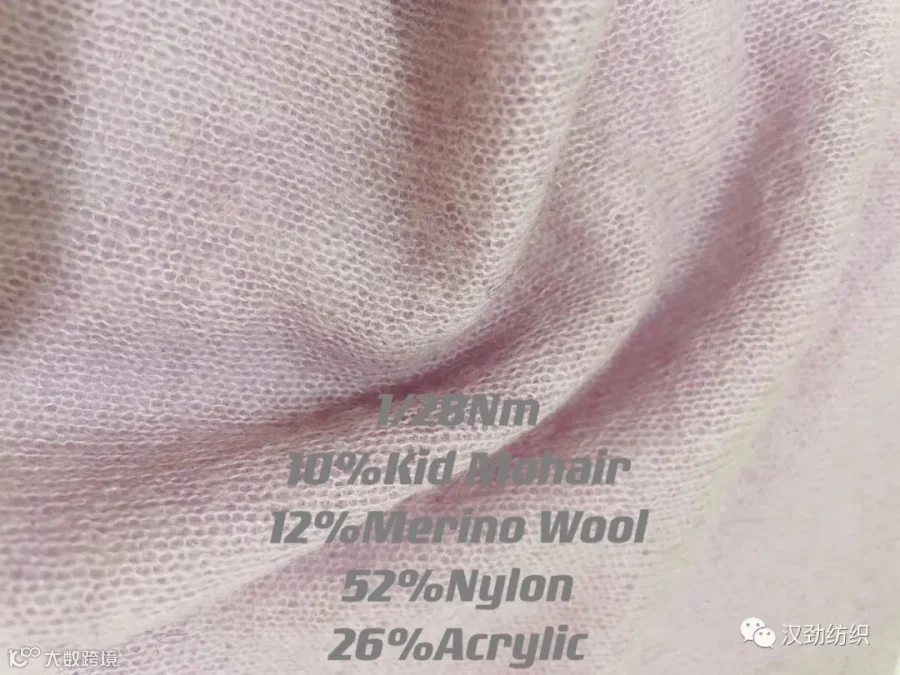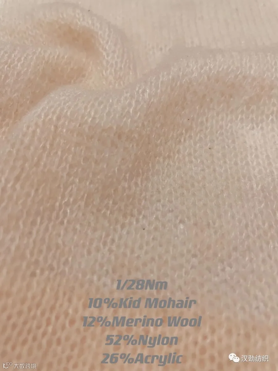 汉劲纺织意大利风格·花式纱之1/28Nm羊毛马海毛,是汉劲进口原料,台湾生产的超细超柔软系列,其特点光泽感强,轻薄,不刺皮肤,有羊绒质感。更适用于贴身打底的毛织物。