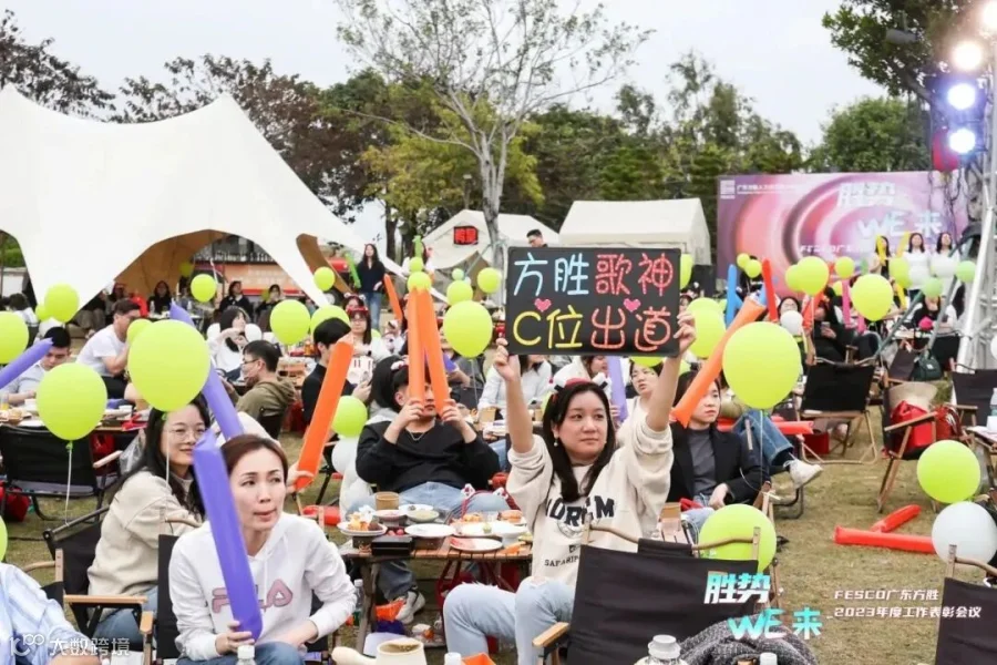 同事们在草坪上,煮一壶热茶,几捧干果,几捧鲜果,边观赏表演,边与三五同事聊得放松,现场气氛热烈,而钟健副总经理带来的经典歌曲串烧,更是让欢呼声此起彼伏,同事们在台下热情打Call,一度把活动推向高潮。