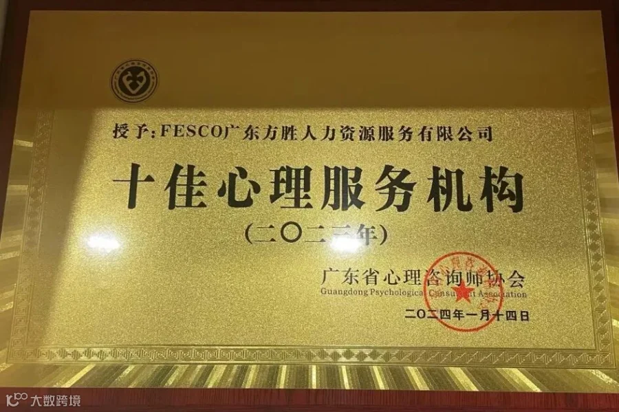 社会心理服务机构是以公司形式向社会提供心理服务和其他心理服务的公司。协会对心理服务机构进行评选,对规范行业管理、树标树新方面具有引导作用。FESCO广东方胜获得广东省“十佳心理服务机构”的荣誉,体现了广东省心理咨询师协会对我司专业化服务、心理服务质量方面的认可,未来我们将持续提升服务品质,为企业发展提供更多“心”能量。