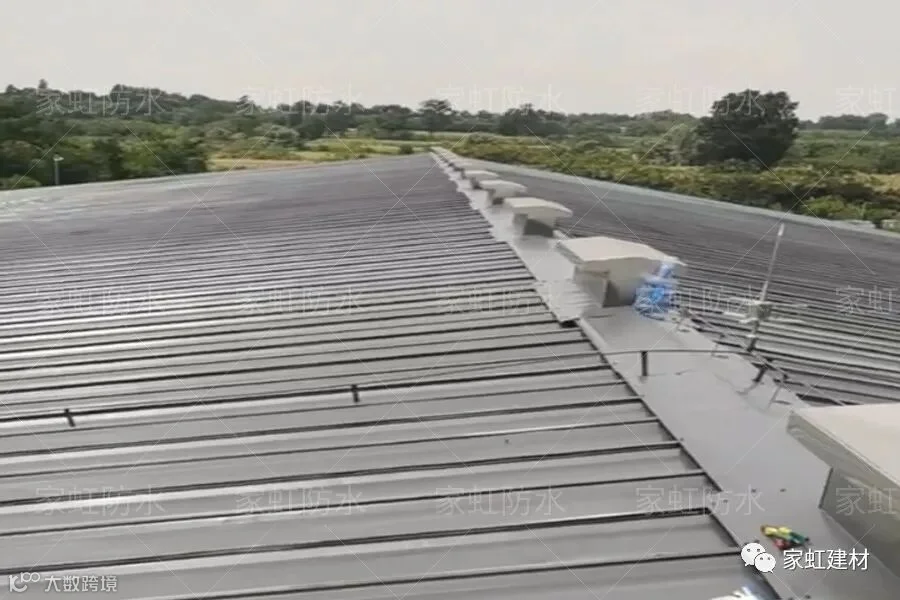 3、检查修补:针对角落、边缝处、搭接处、管道处、金属板与女儿墙交接处、螺钉固件等其他金属屋面防腐薄弱环节进行仔细检查,确定边缝角落全部喷涂到位。
