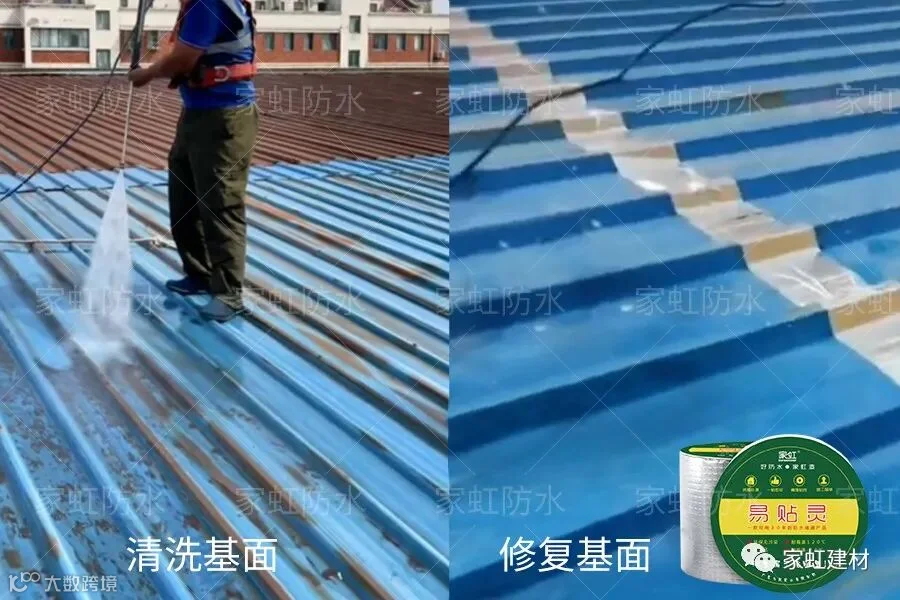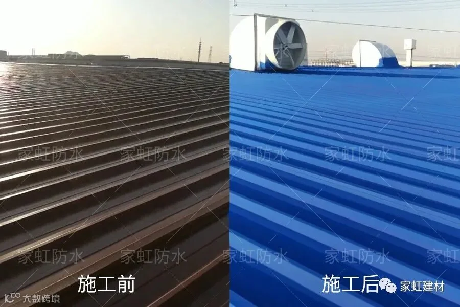 在铁锈转化剂施工后,铁锈转化为有机铁化合物,表面喷涂彩色金属防锈漆,强化耐候性、防水性、与防锈防腐,保护彩钢瓦基面免受锈蚀困扰。