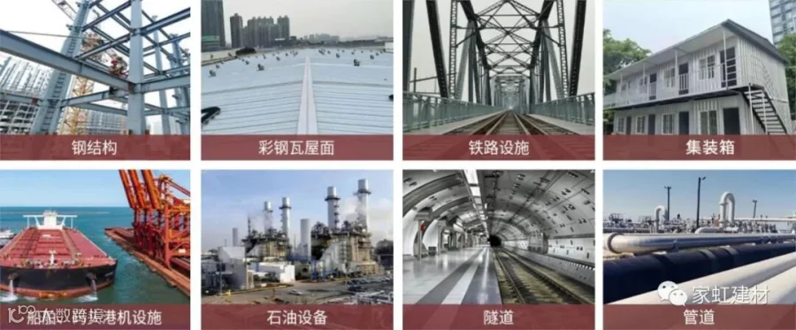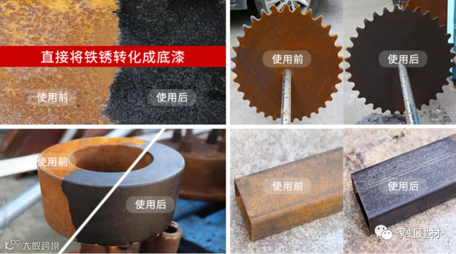 家虹铁锈转化剂广泛适用于钢结构、厂房、集装箱、机械设备、储罐、桥梁、管道、门窗、车辆、船舶维修等,是一种经济有效的除锈方法。