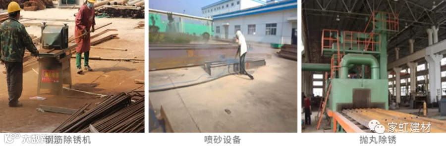 机器除锈一般用到钢筋除锈机、喷砂设备和抛丸除锈三种。