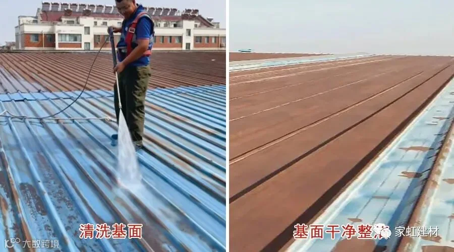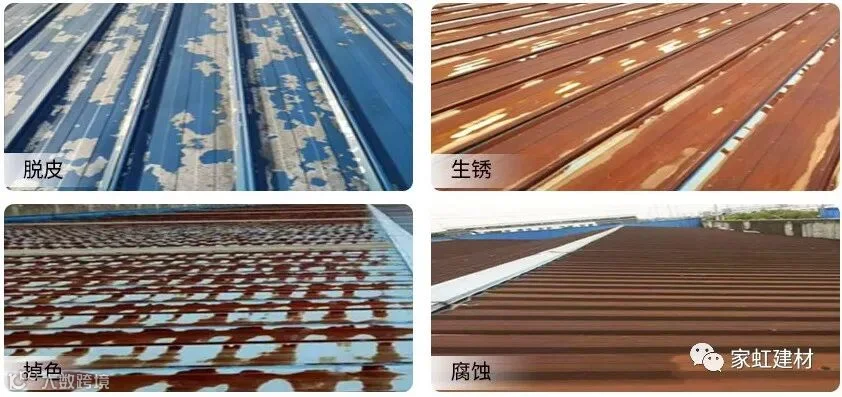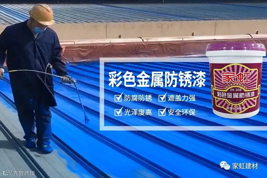 家虹铁锈转化剂针对防腐防锈,保护彩钢瓦金属基面是一款值得信赖的产品。喷涂施工,施工后材料与彩钢瓦基面的铁锈发生反应成膜,保护基面不受锈蚀影响。