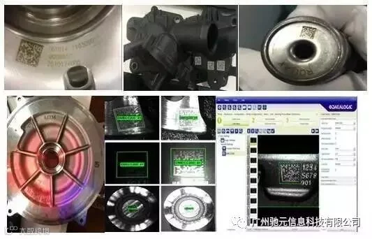 d)各类汽车零部件(变速离合器壳体二维码、汽车电机塑料外壳读码、变速箱轴体、汽车轮毂)上标识的二维码我们的老将-Matrix 210N均可以为之一试