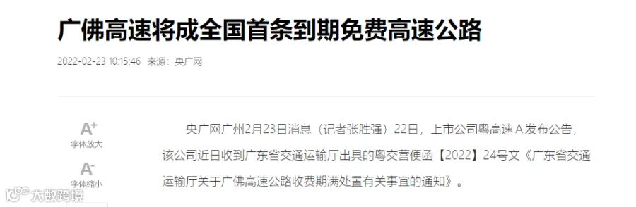 导读:来源|卡团(ID:chinakatuan)近日,据央广网报道,广佛高速公路将会在 2022年3月3日零时起停