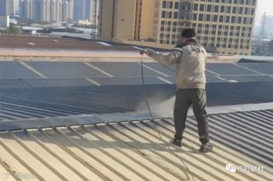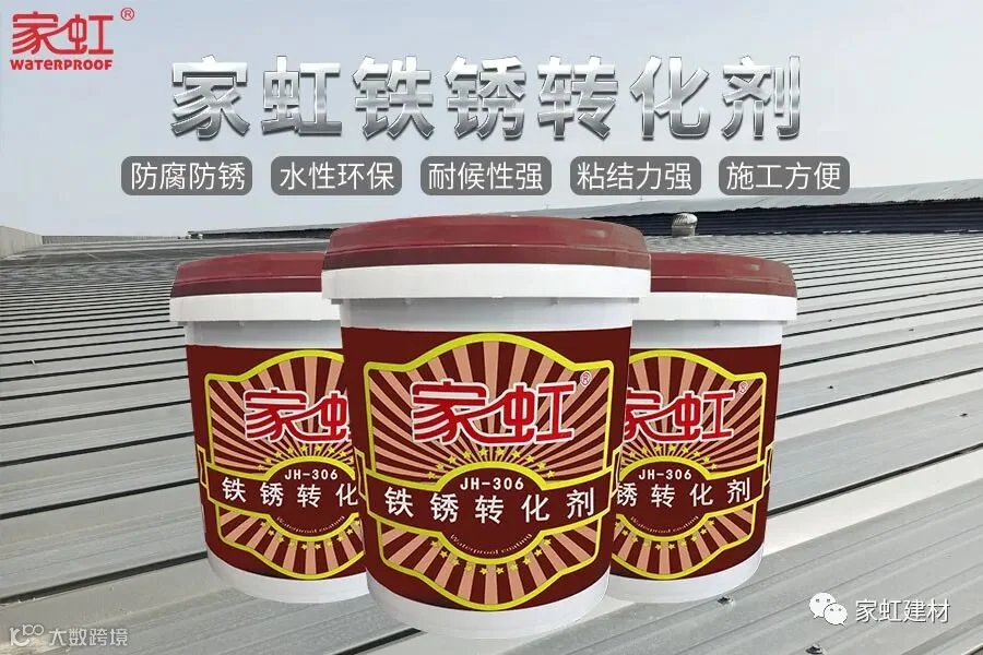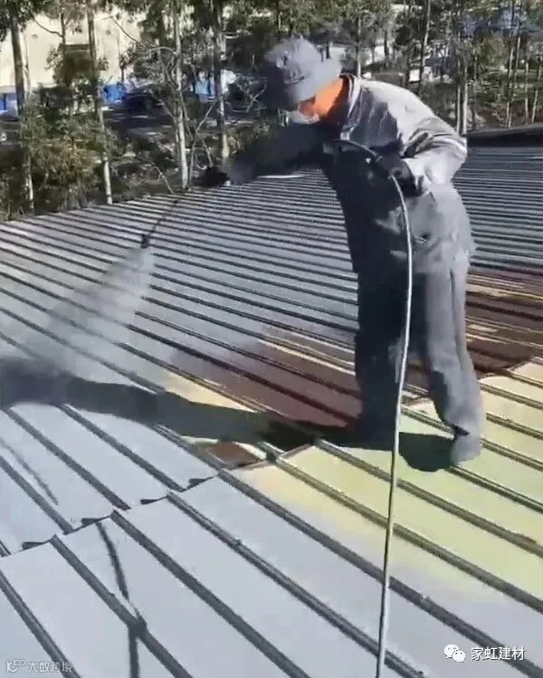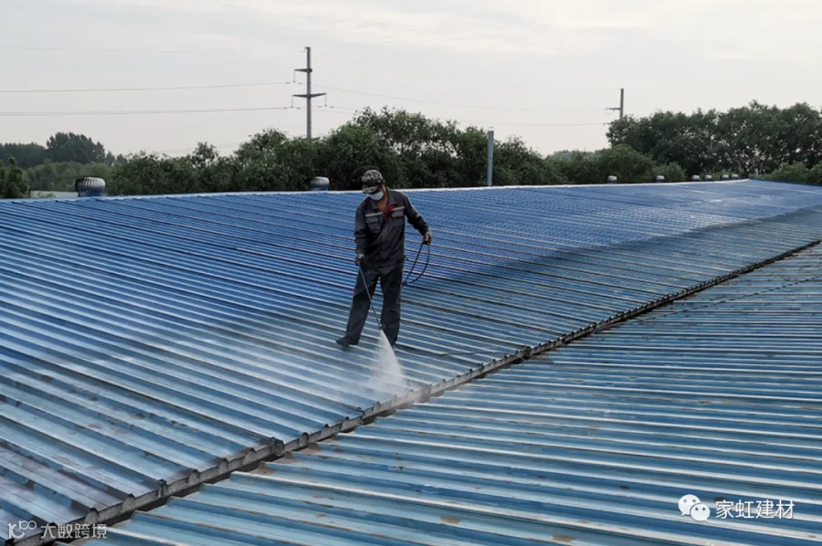 针对彩钢瓦金属屋面的翻新问题,家虹产品--铁锈转化剂,能够通过与基面铁锈发生化学反应,在屋面形成一层致密的防锈保护膜,长久有效保护基面不受锈蚀困扰,延长了金属屋面的使用寿命,节约维修成本。