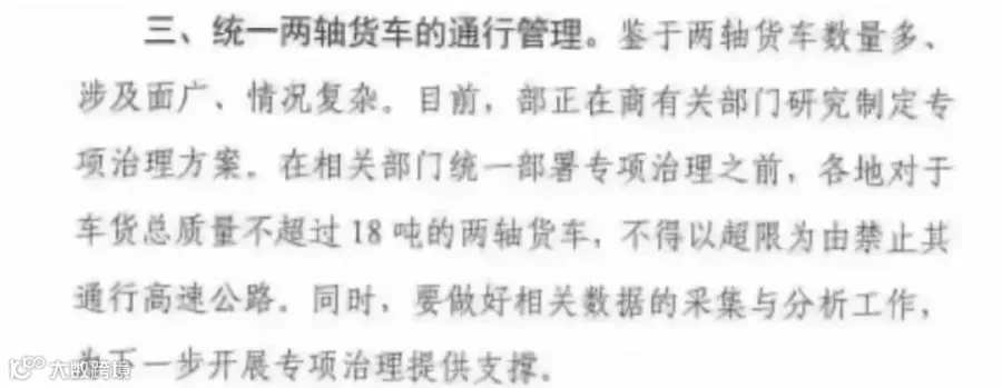 对于车货总质量不超过18吨的二轴货车,不得以超限为由禁止其通行高速公路。
