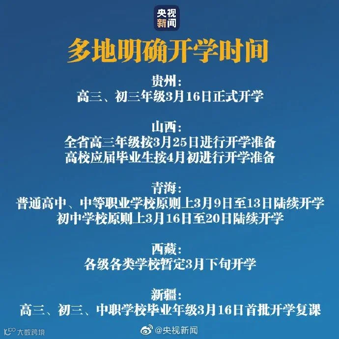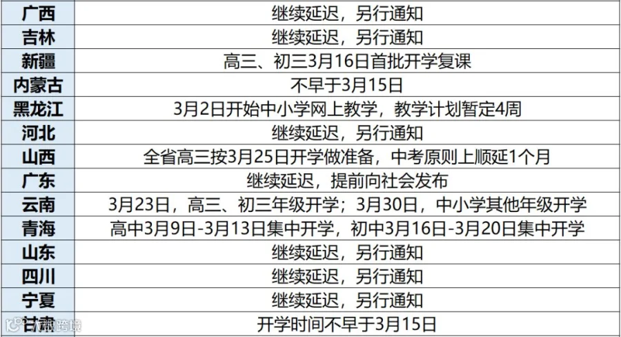 目前,各个省份根据中央的指示和自身的实际情况,调整了开学时间安排。教育部最新通知,截止到目前,全国34个省级行政区中,已经有8个省级行政区明确开学时间节点。