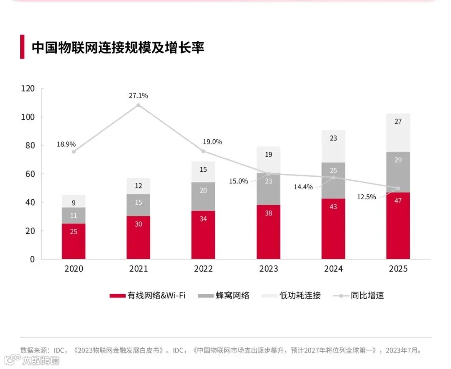 我国正大力推动物联网与其他新一代信息技术加速集成和融合,物联网连接规模和应用持续增长。