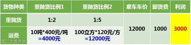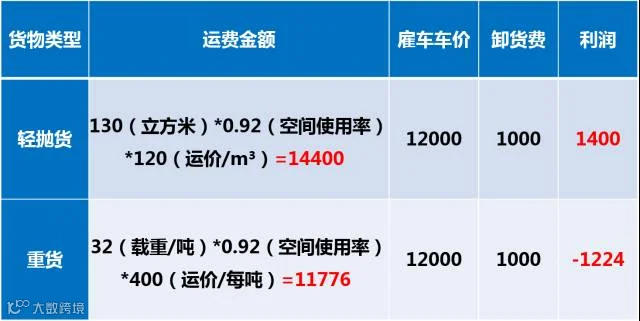 由此可以看出,纯重货是亏损的,纯轻抛货利润在1400元。