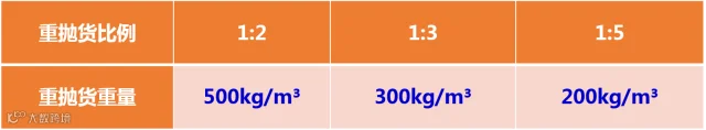 重抛货:一立方米轻抛货与重货按比例混装货。