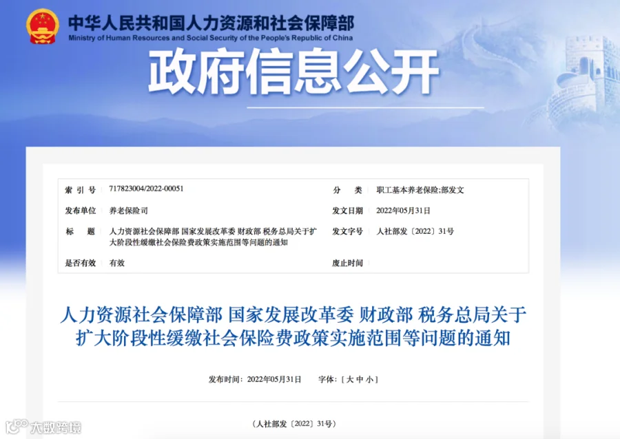 17个扩围行业困难企业:养老保险费缓缴实施期限为2022年6月至12月;失业保险费、工伤保险费缓缴期限为2022年6月至2023年5月。