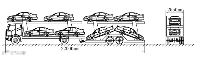 主要表现为半挂车辆运输车在用于装卸的渡板上超长装载乘用车(行业俗称“6+2”“7+2”,示意图见附件1),严重扰乱了整车物流市场秩序。