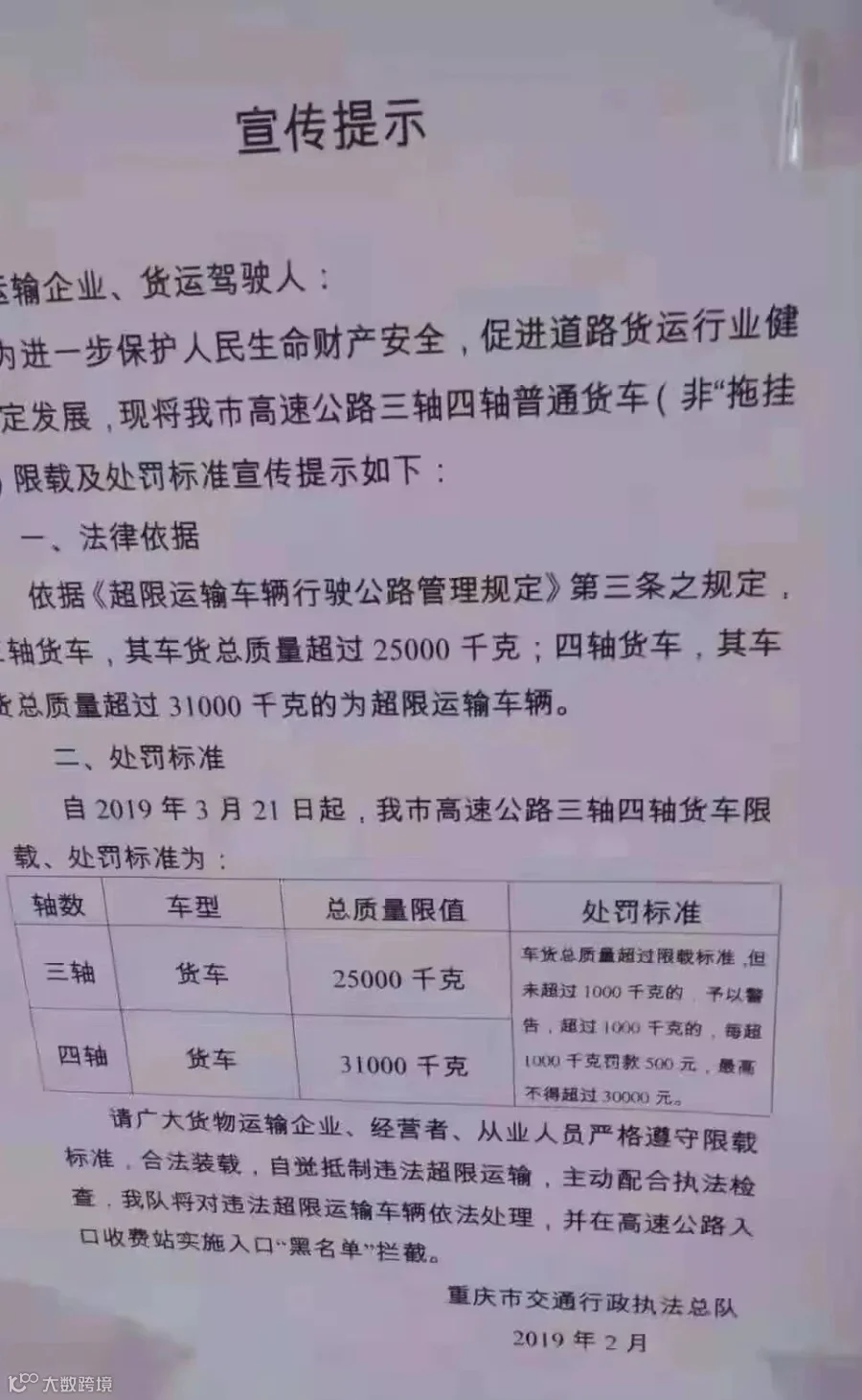 近日,重庆市合川区发布公告,从2019年5月1日起,将严格执行货车超限超载认定标准,其中三轴、四轴货车将有重大变化。