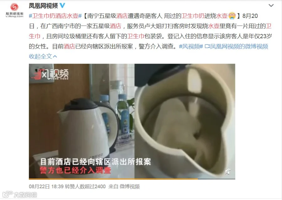 整个事件真的是令人咂舌,包装袋你都知道往垃圾桶里扔,用过的卫生巾竟然放在烧水壶里。
