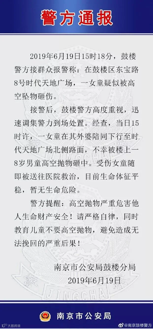 比如说,6月19日,一女童疑似被高空坠物砸伤,经调查发现,是一名8岁男童高空抛物砸中。